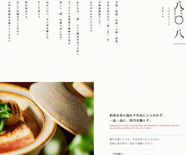 Wahoku堅持于日本菜的不斷創新,網站的建設簡潔有新意而又不失日本菜長久以來的根本,