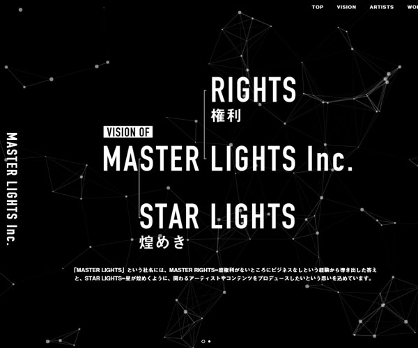Masterlights是家以娛樂項目的整體規劃、運營,海外宣傳等多領域事業的公司,網站整體的設計風格與公司愿景契合一致