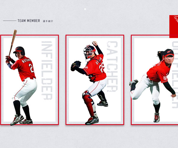Baseball.eiwa是當地一家著名的棒球隊,紅色的大量使用展現了網站的活力也展現了團隊的活力,