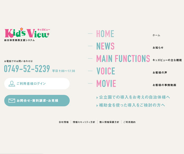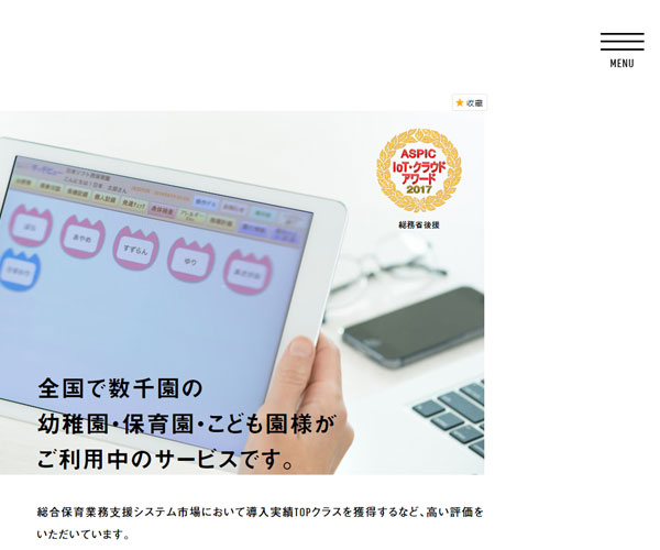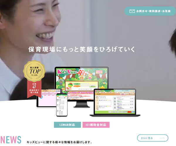 Nihonsoft為許多幼兒園等教育設施提供管理服務,網站以多彩的顏色來體現“幼”的特色,
