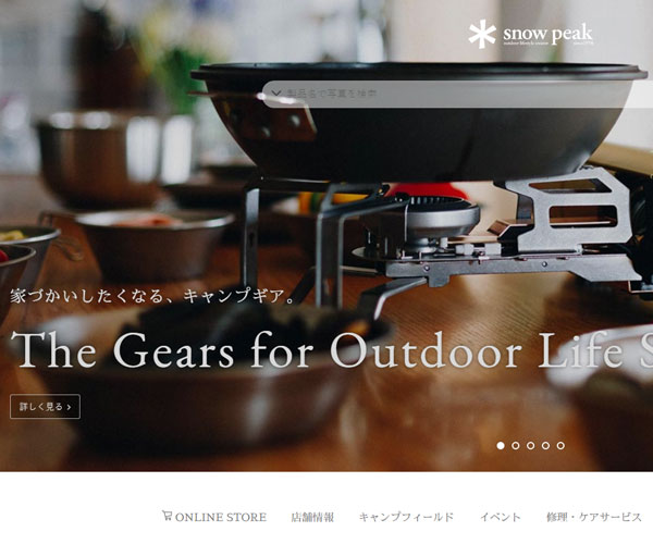 Snowpeak為客戶提供各類冬季野營相關項目,網站整體風格較為簡潔,logo的精心設計與