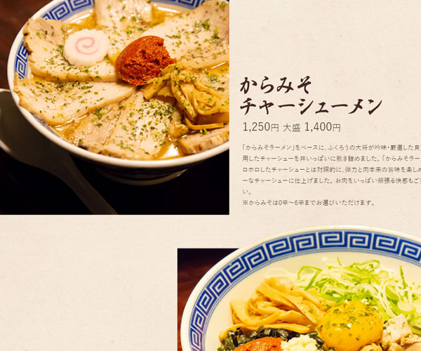 Passione制作不同種類的日式湯面,網站的制作排版極其嚴謹,經典的圖文排版方式