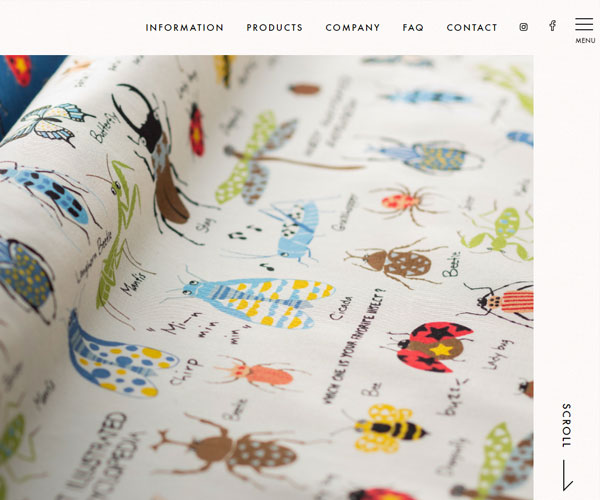 Cotton-kobayashi為布藝雕繡優美的花紋,網站是一個經典制作方式的電商網站布局