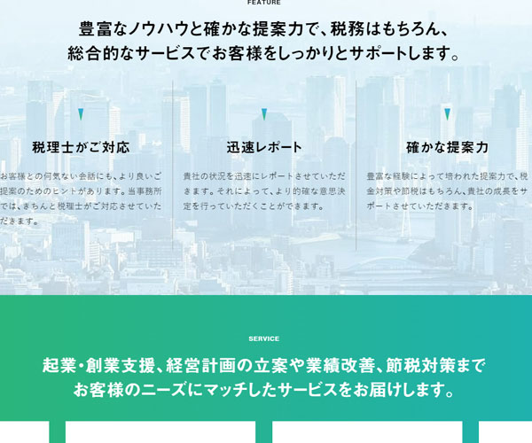 Inui是一家稅務會計的事務所,網站以白色的背景與藍靛色的漸變形成對比建設網站,